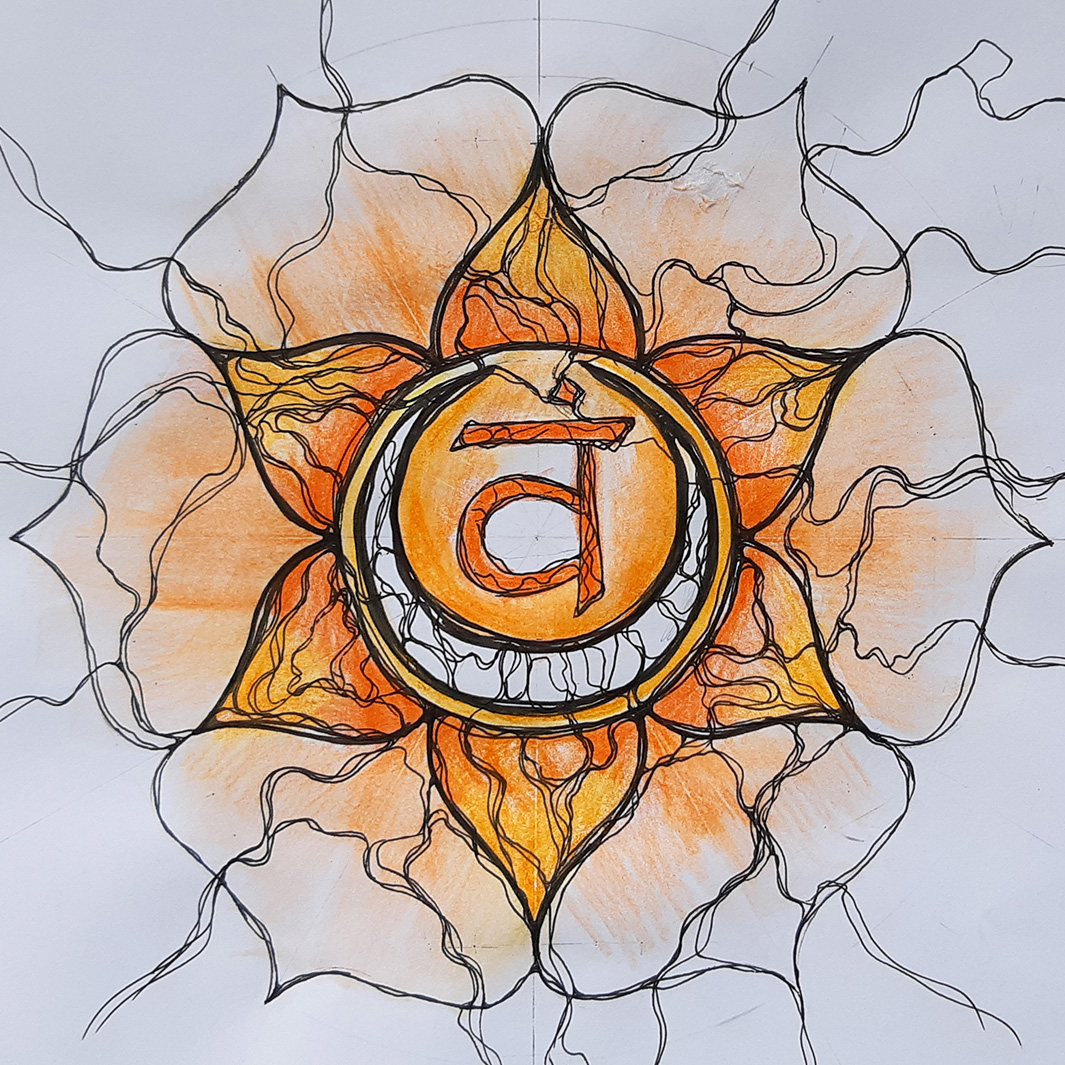 The 2nd Chakra - Swadhisthana - is believed to be the seat of our emotions. This energy centre relates to pleasure, freedom, creativity, flexibility, sensuality and money. It's associated with the colour orange and has 6 lotus petals. The moon-shaped crescent is the yantra of this chakra.